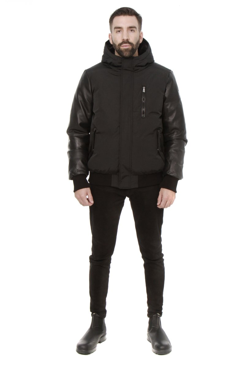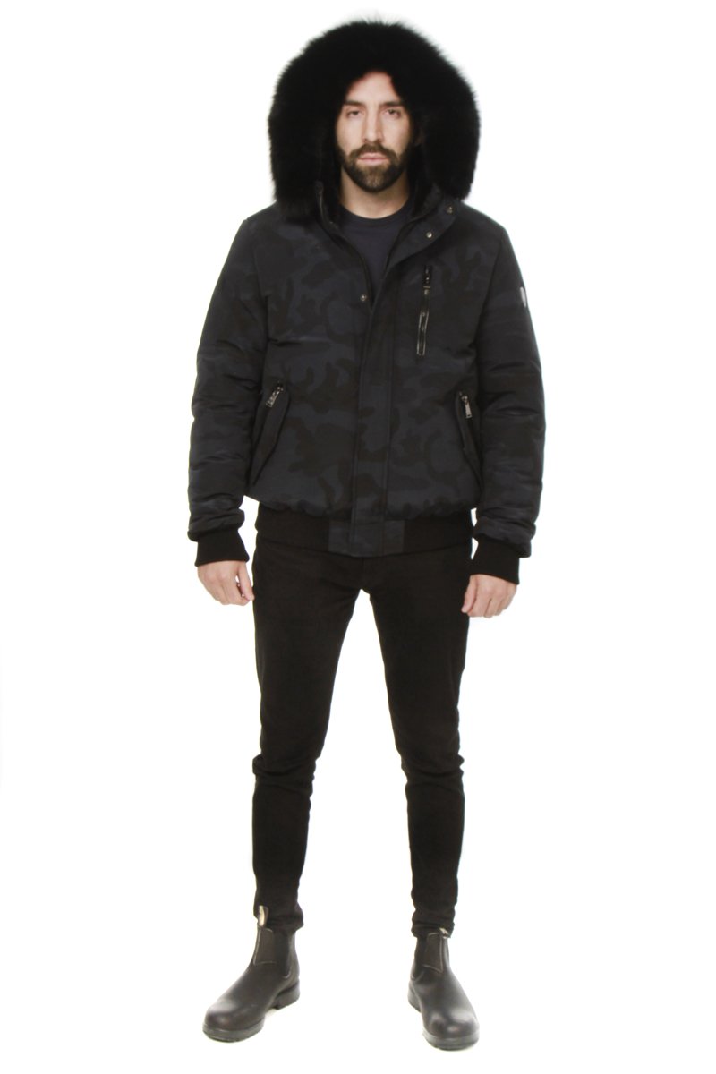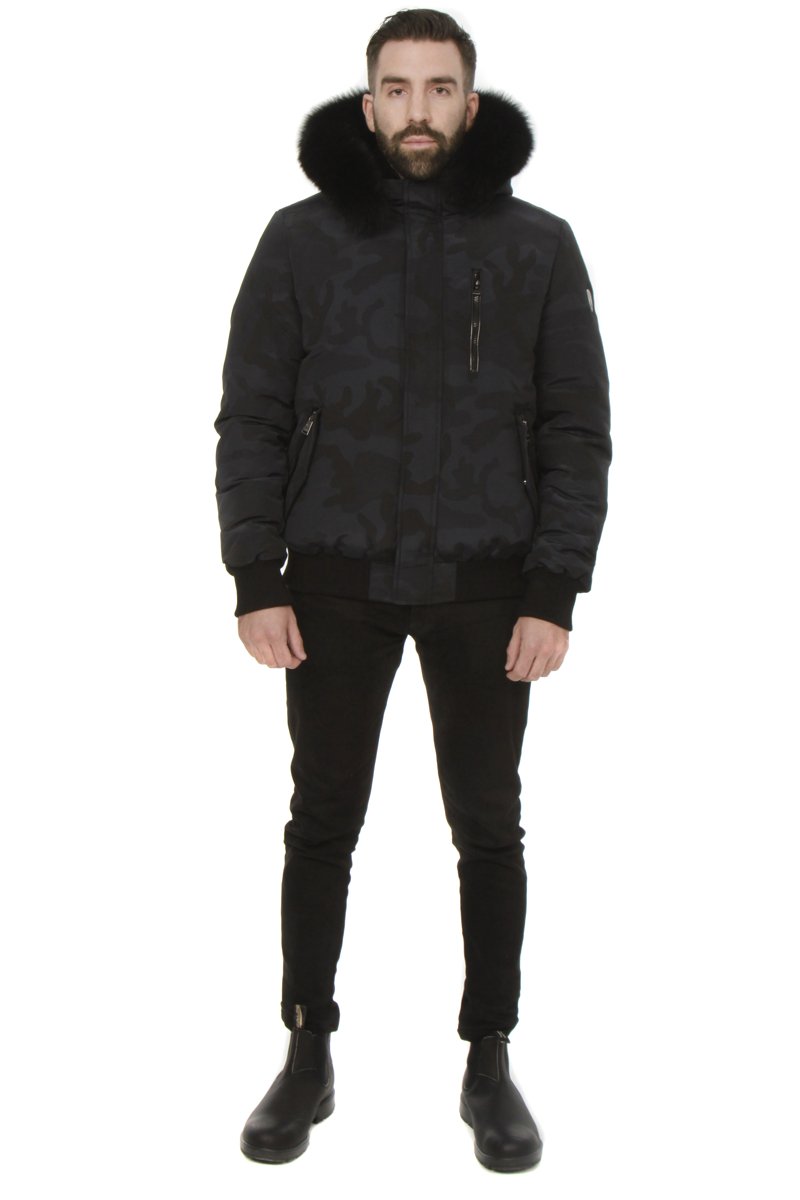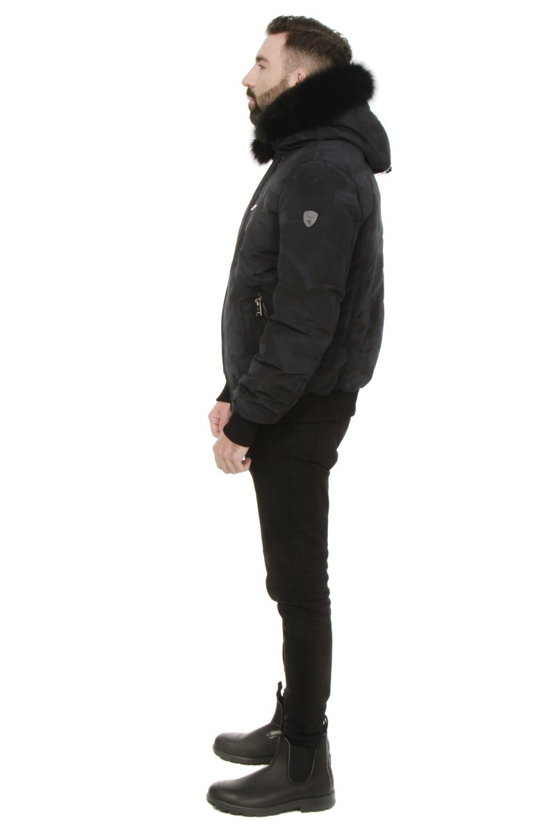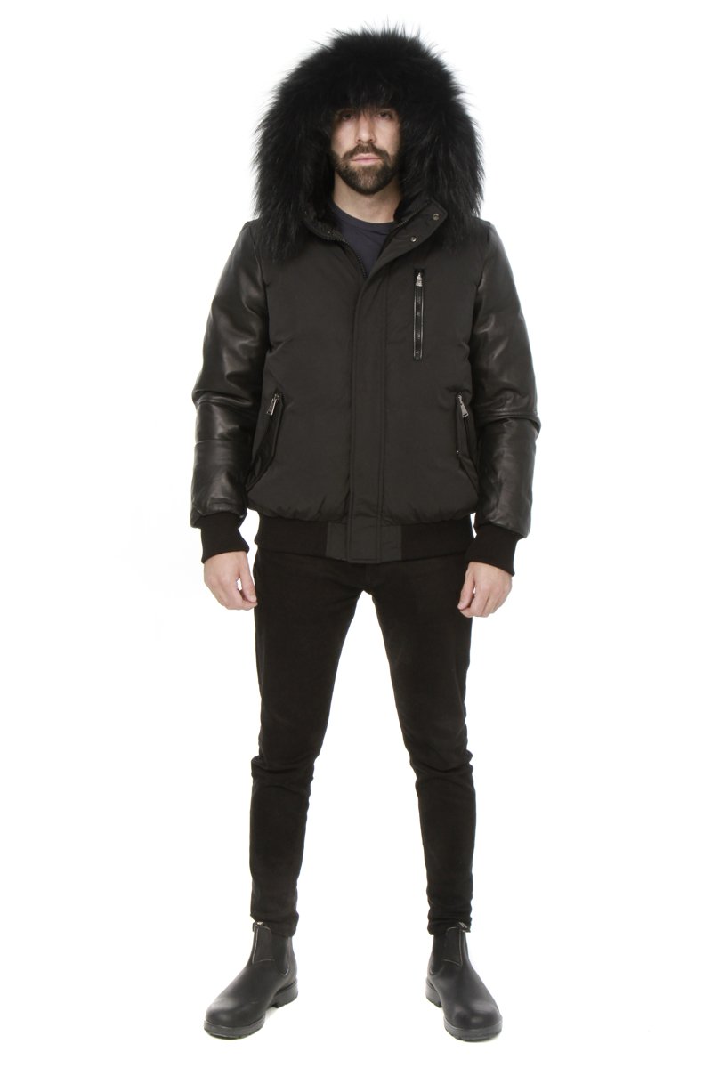 - Men's Bomber Jacket with Black Natural Fur Trimmed Hood