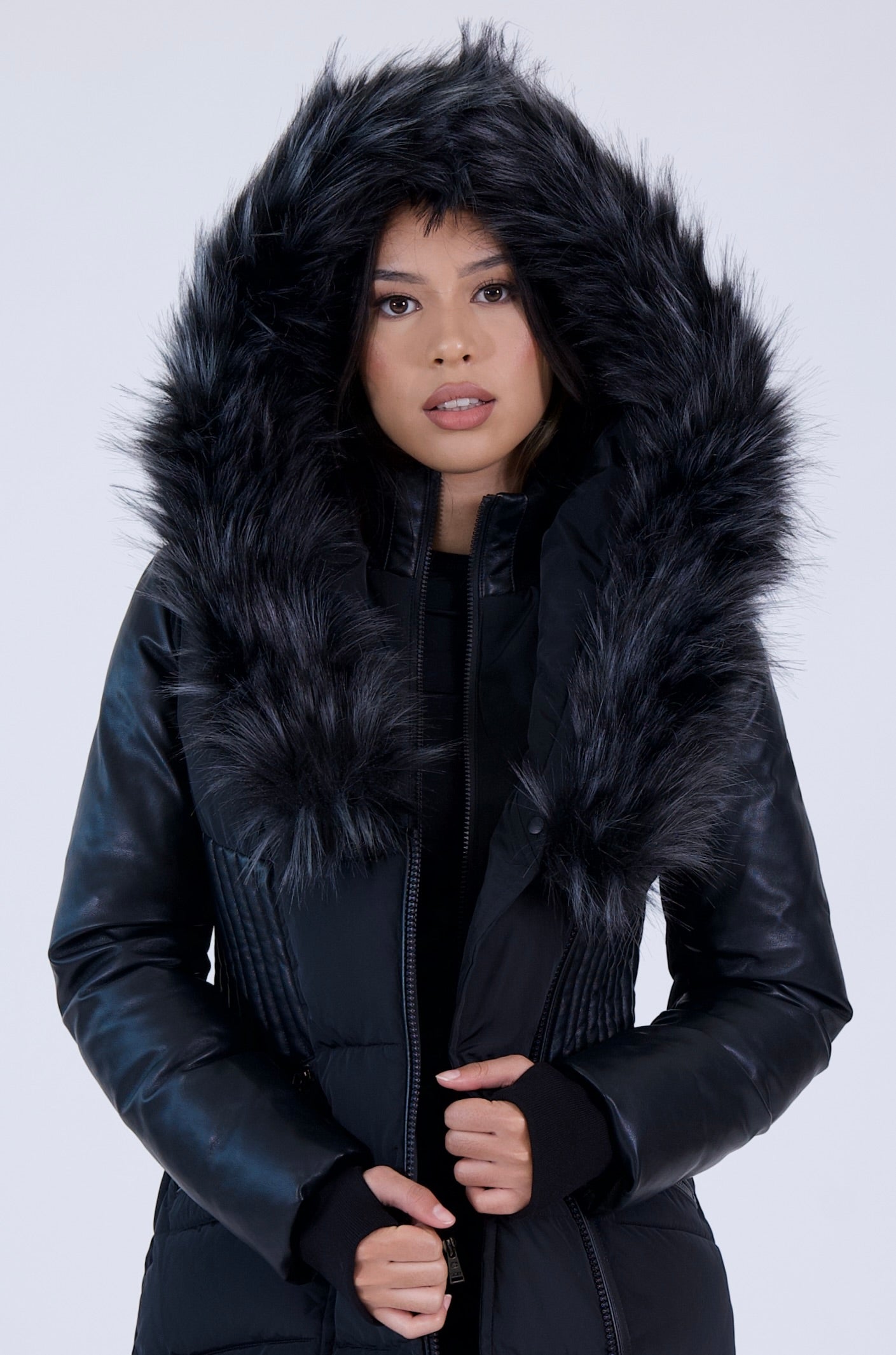 - Doudoune luxueuse en fausse fourrure végétalienne
